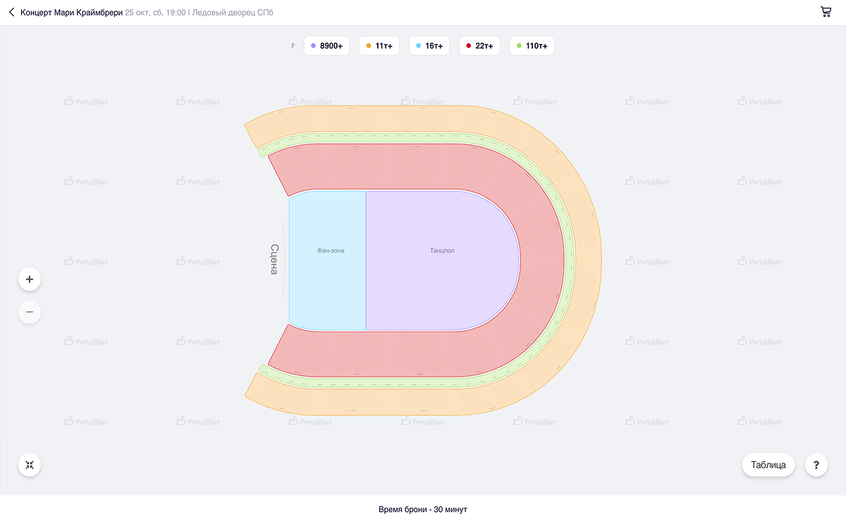 PB Widget поддерживает любые форматы продажи билетов — по конкретным местам, зонам, категориям или их комбинации. Вы можете настроить схему зала любой сложности: с балконами, амфитеатрами, ложами или секторами